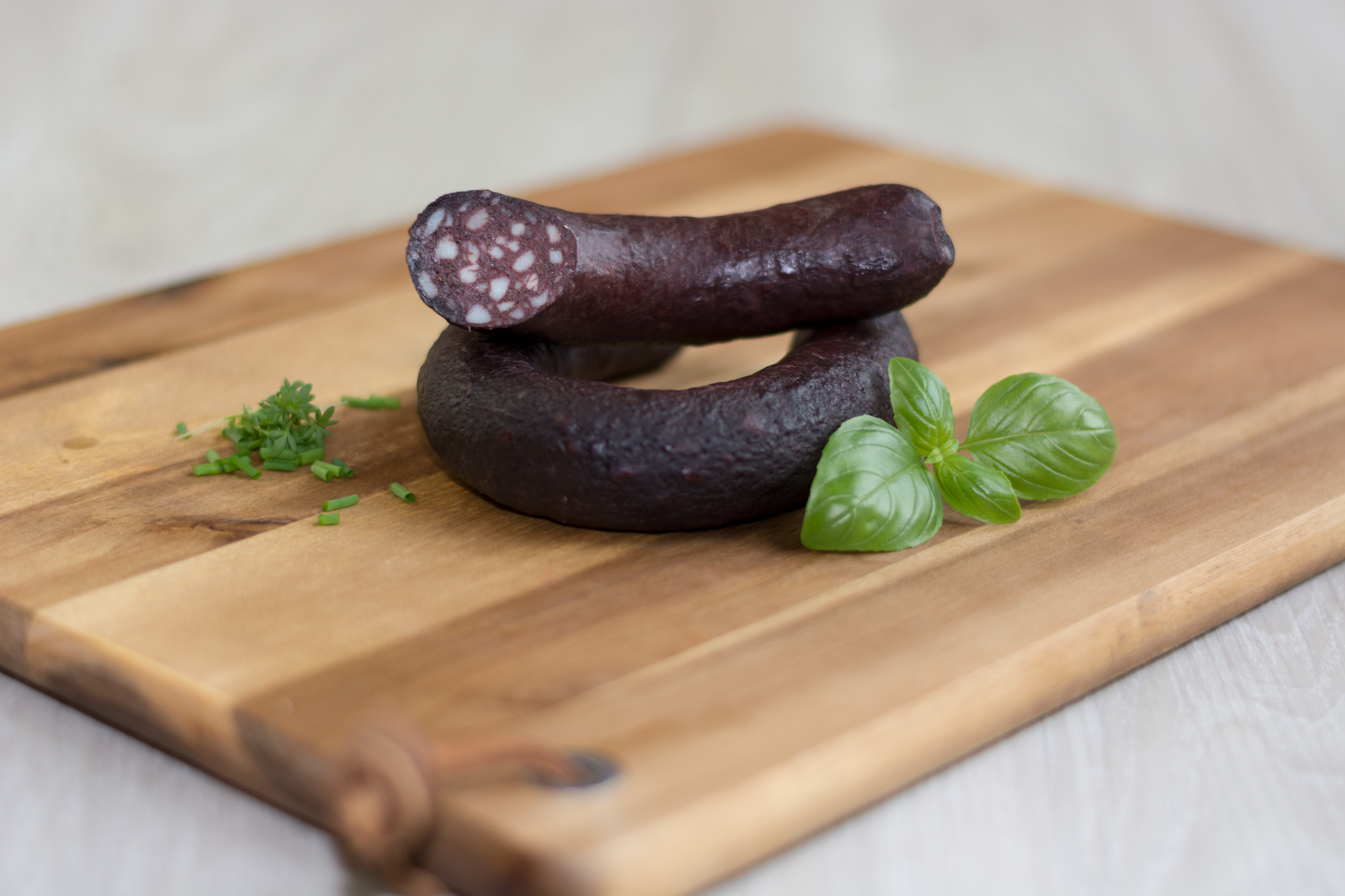 Zutaten: Schweinefleisch 13 %, Blut Konservierungsstoff: Speisesalz, Natriomnitrit, Zwiebeln, Gewürz, Schweinedarm, Rauch.
